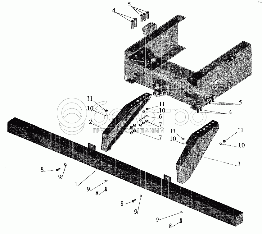 Каталог запасных частей к технике: МАЗ-5337 (2005). Установка заднего бампера
