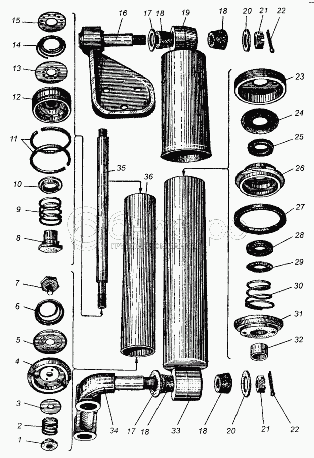Каталог запасных частей к технике: МАЗ-5429. Амортизатор передней подвески