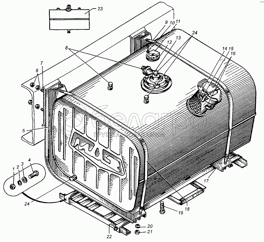 Каталог запасных частей к технике: МАЗ-5429. Бак топливный и его установка МАЗ-509А