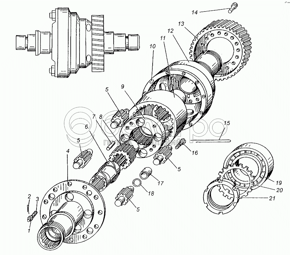 Каталог запасных частей к технике: МАЗ-5429. Дифференциал межосевой раздаточной коробки МАЗ-509А