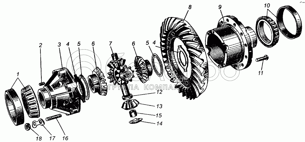 Каталог запасных частей к технике: МАЗ-5429. Дифференциал заднего моста