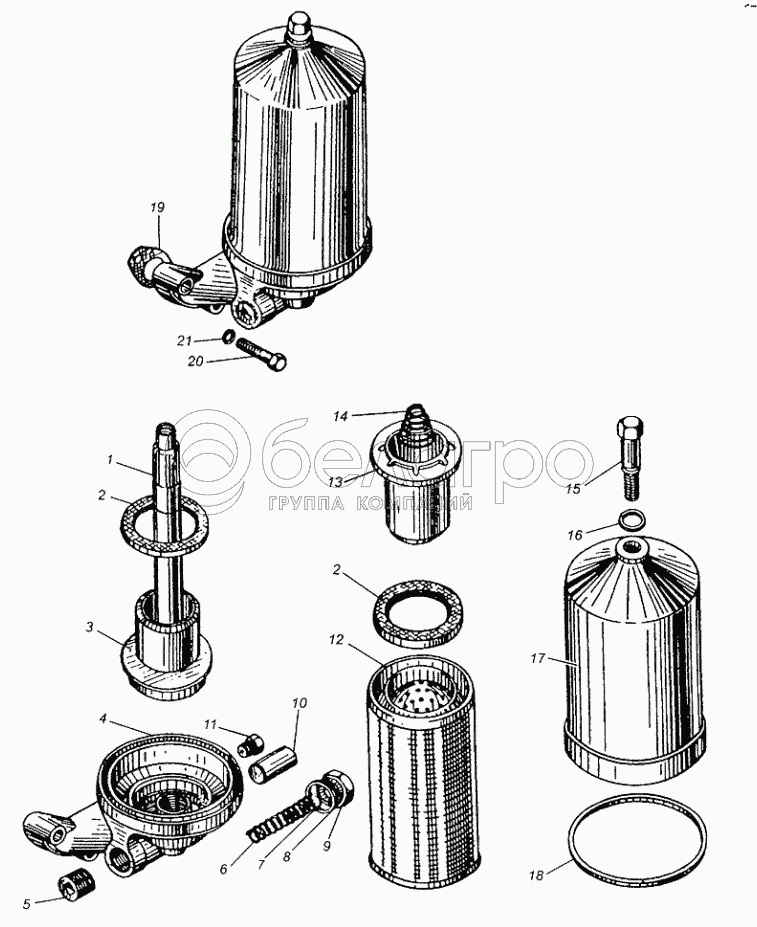 Каталог запасных частей к технике: МАЗ-5429. Фильтр грубой очистки масла