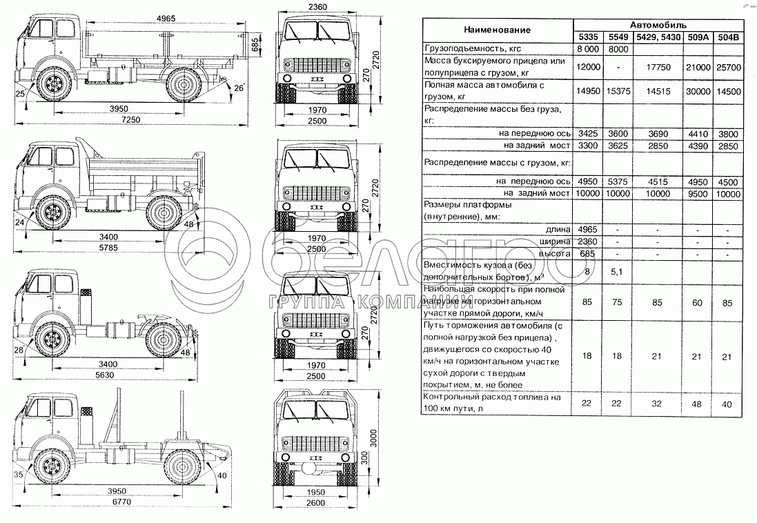 Каталог запасных частей к технике: МАЗ-5429. Габаритные размеры и технические данные