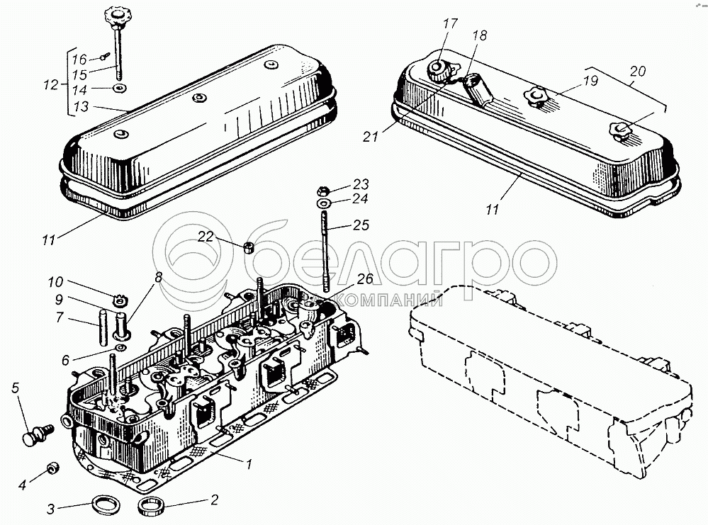 Каталог запасных частей к технике: МАЗ-5429. Головка блока цилиндров