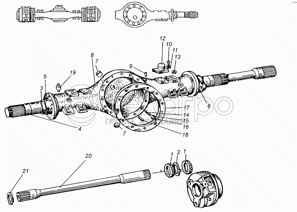 Каталог запасных частей к технике: МАЗ-5429. Картер заднего моста с полуосями и кожухами