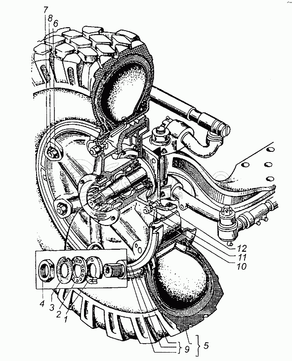 Каталог запасных частей к технике: МАЗ-5429. Крепление переднего колеса