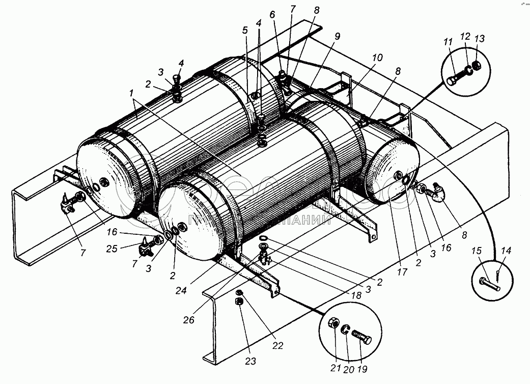 Каталог запасных частей к технике: МАЗ-5429. Крепление воздушных баллонов МАЗ-5549