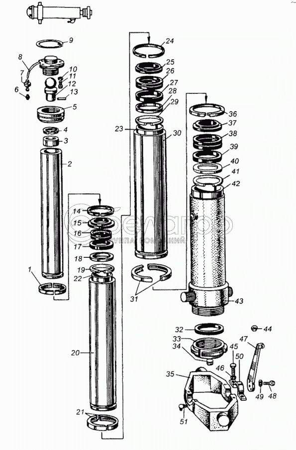 Каталог запасных частей к технике: МАЗ-5429. Механизм гидравлический подъема платформы