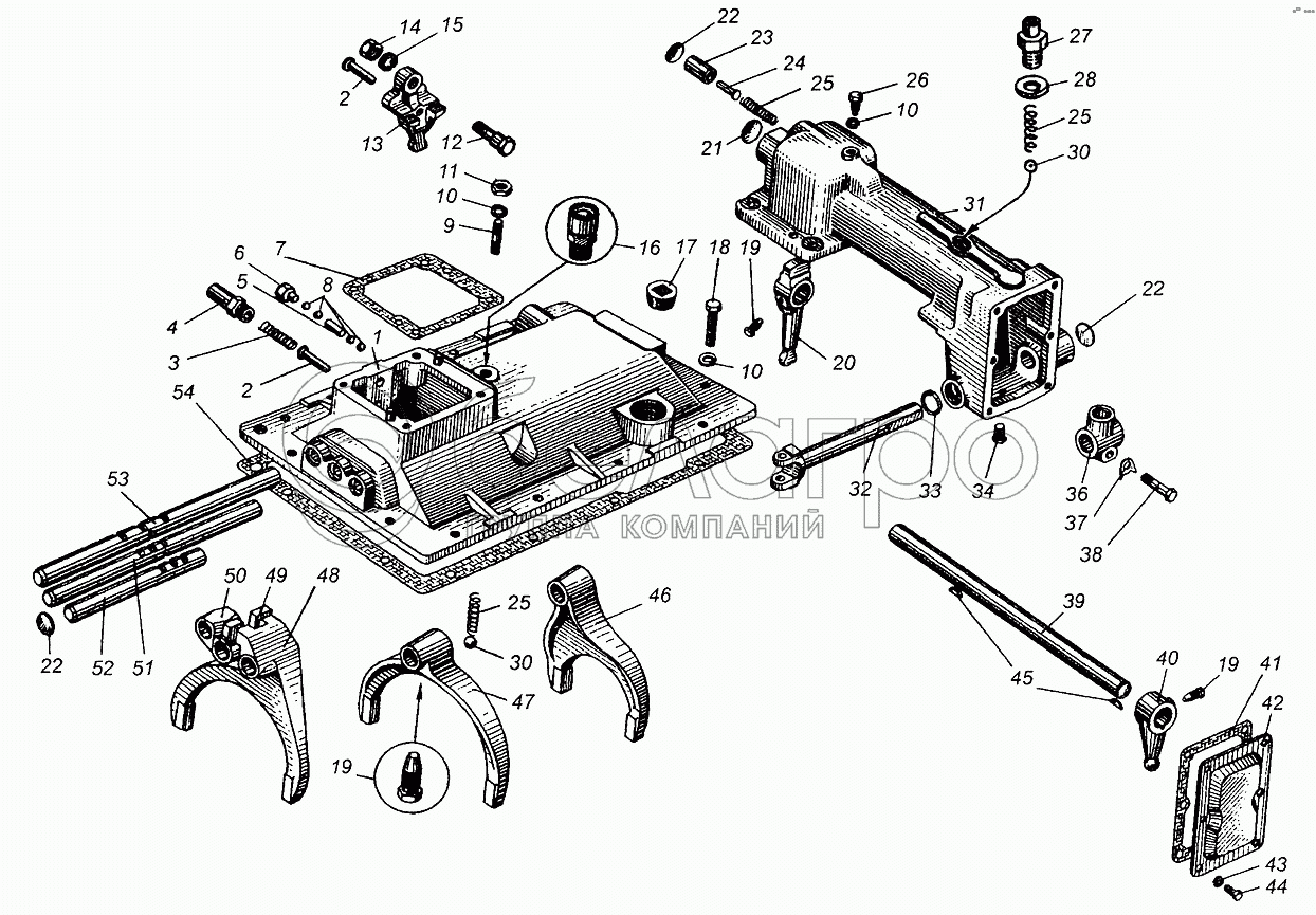 Каталог запасных частей к технике: МАЗ-5429. Механизм переключения передач