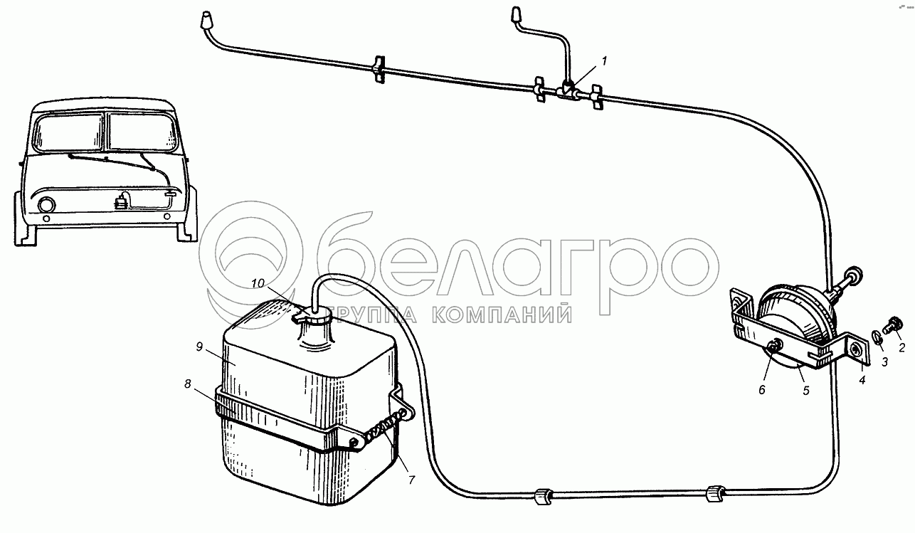 Каталог запасных частей к технике: МАЗ-5429. Омыватель ветровых стекол