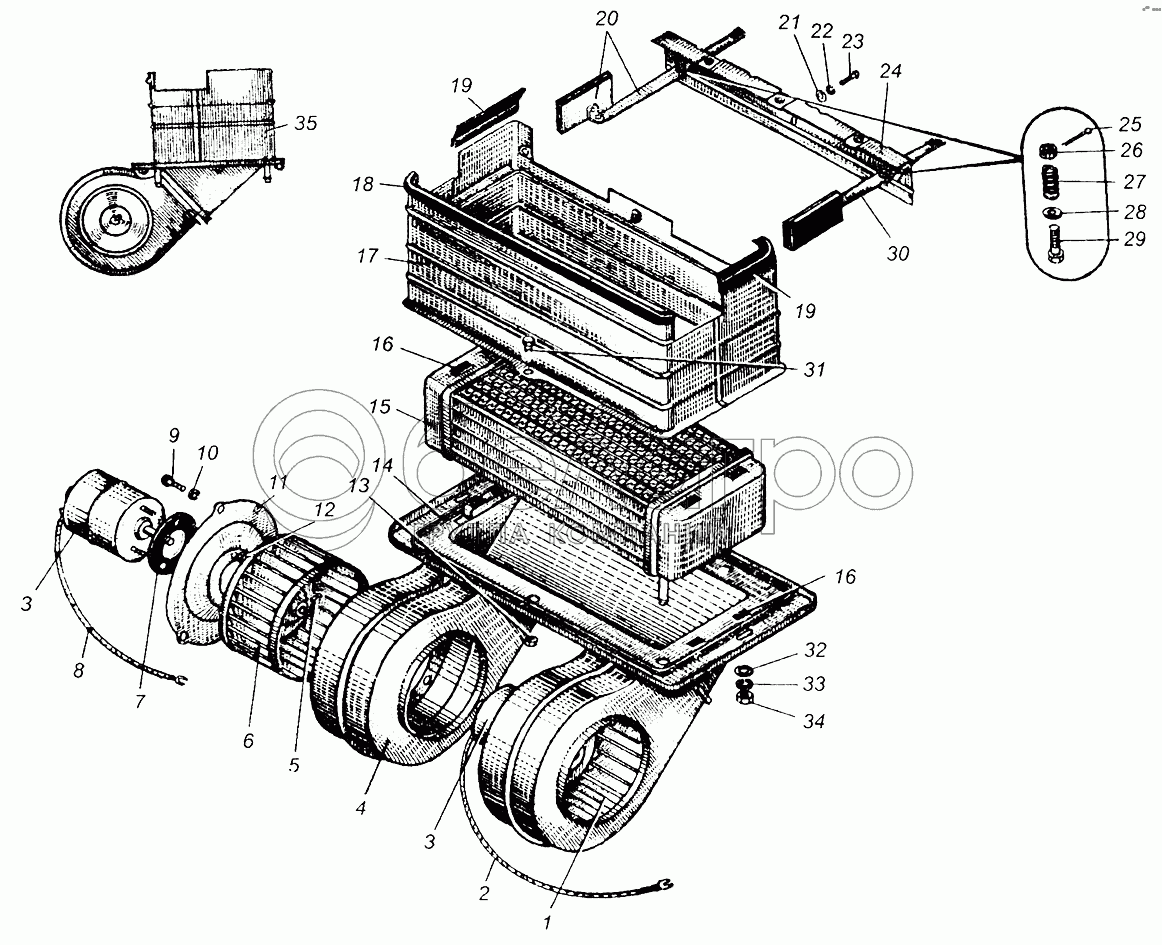 Каталог запасных частей к технике: МАЗ-5429. Отопитель кабины МАЗ-504В