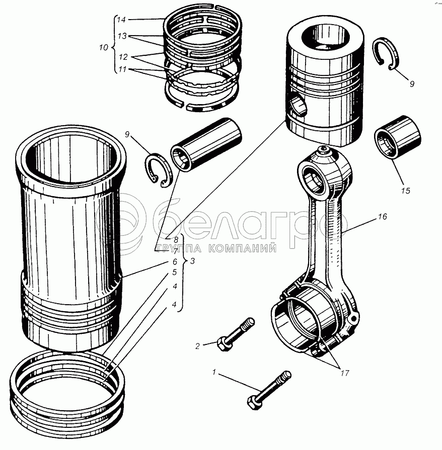 Каталог запасных частей к технике: МАЗ-5429. Поршень и шатун