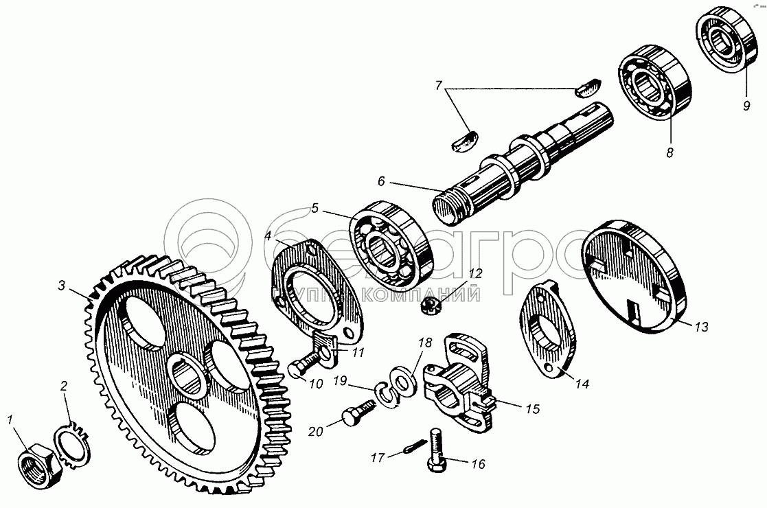 Каталог запасных частей к технике: МАЗ-5429. Привод топливного насоса высокого давления