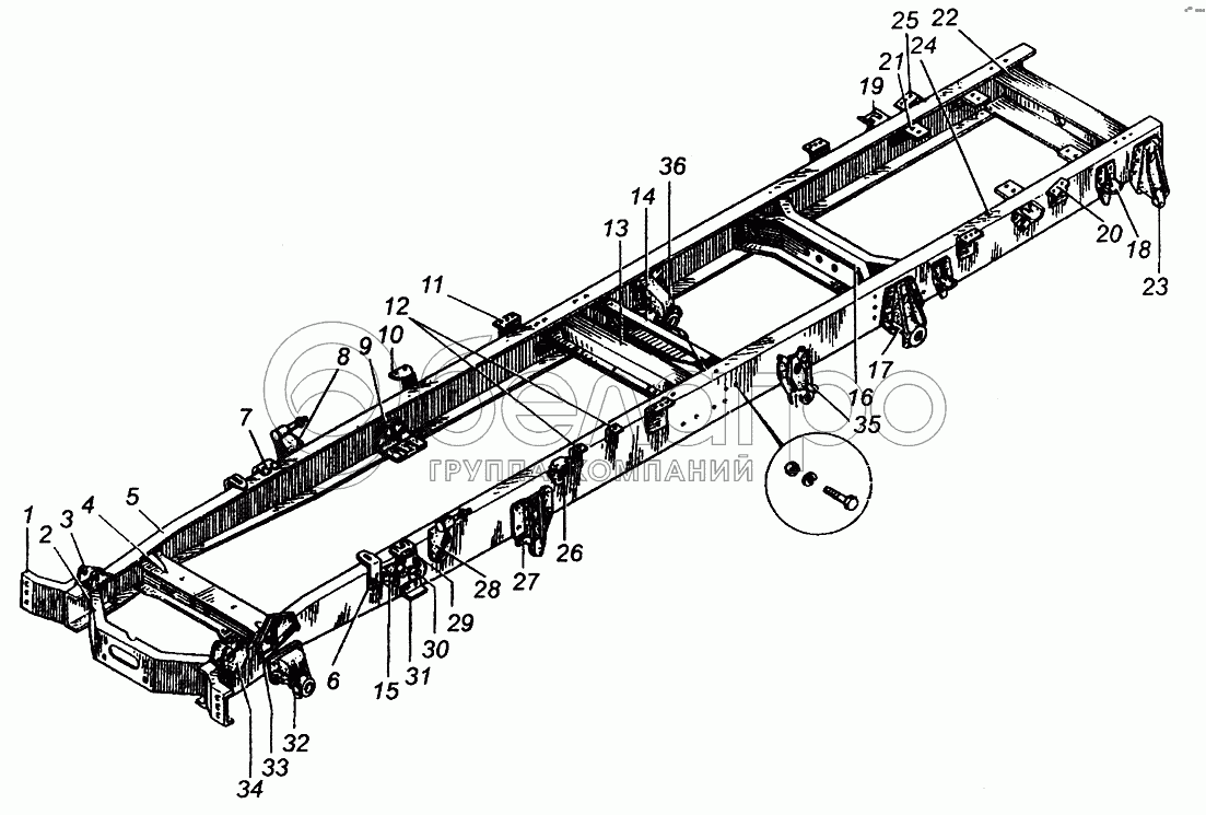 Каталог запасных частей к технике: МАЗ-5429. Рама МАЗ-509А