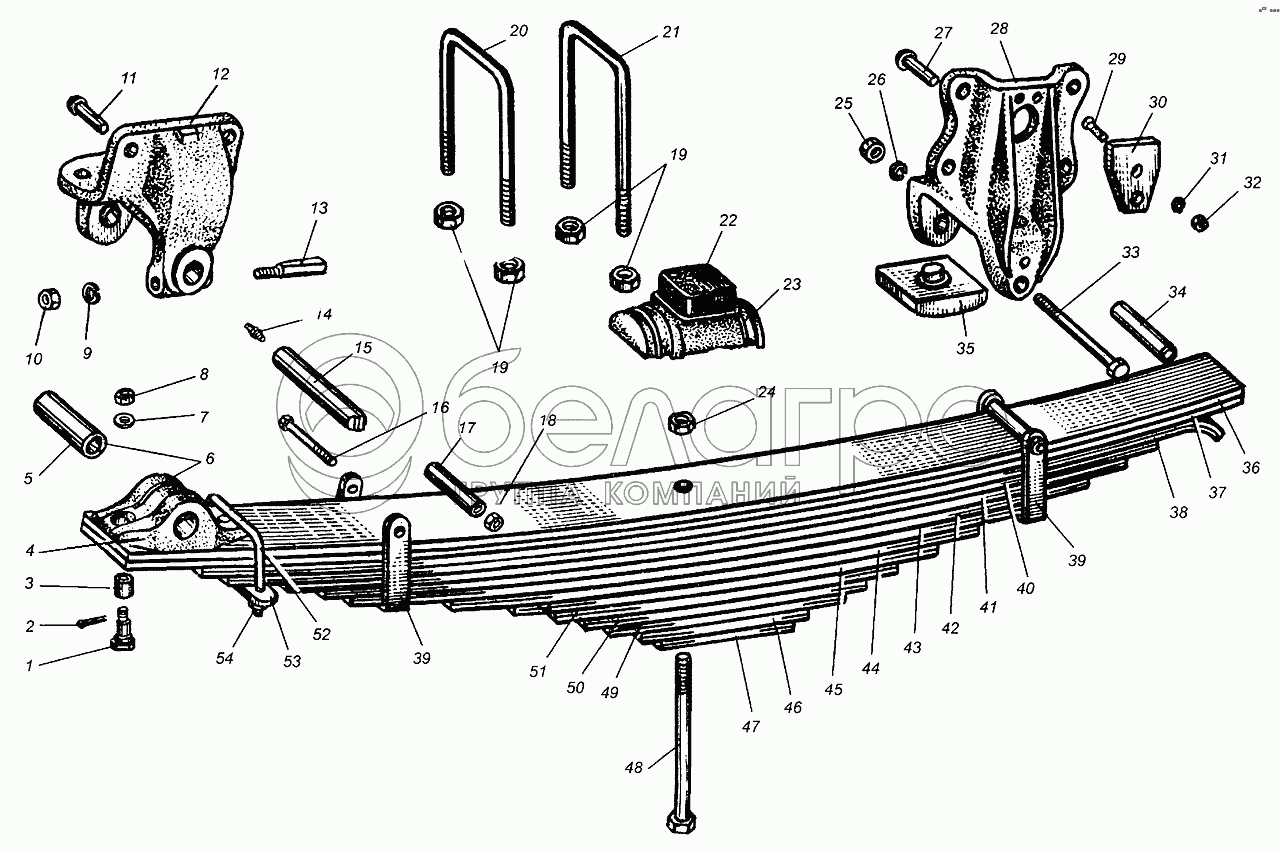 Каталог запасных частей к технике: МАЗ-5429. Рессора передняя