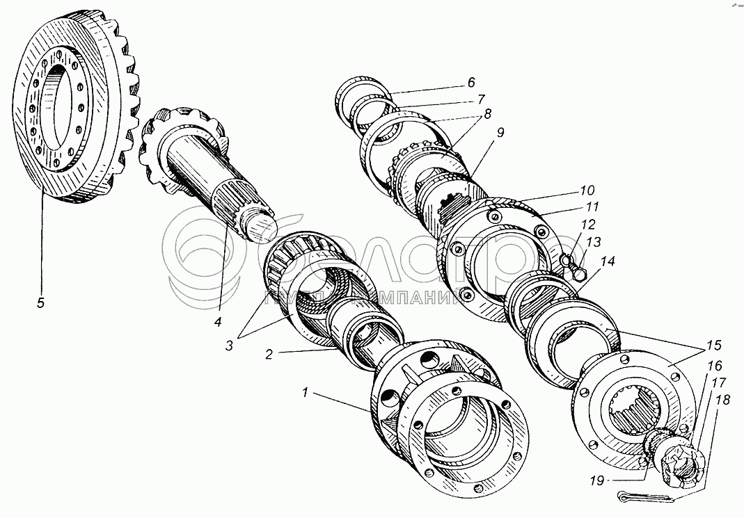 Каталог запасных частей к технике: МАЗ-5429. Шестерня ведущая с картером МАЗ-509А