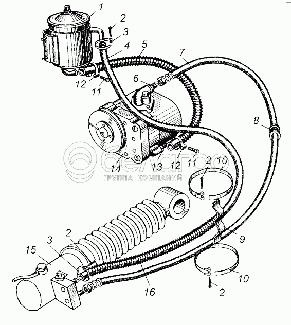 Каталог запасных частей к технике: МАЗ-5429. Трубопроводы гидроусилителя рулевого управления