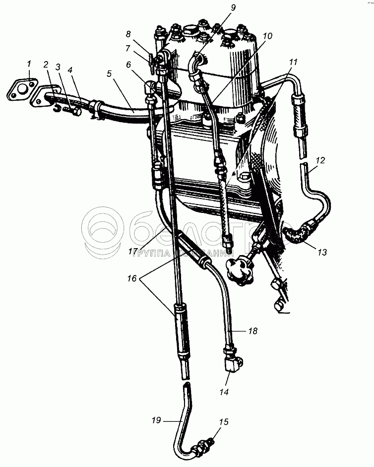Каталог запасных частей к технике: МАЗ-5429. Трубопроводы компрессора