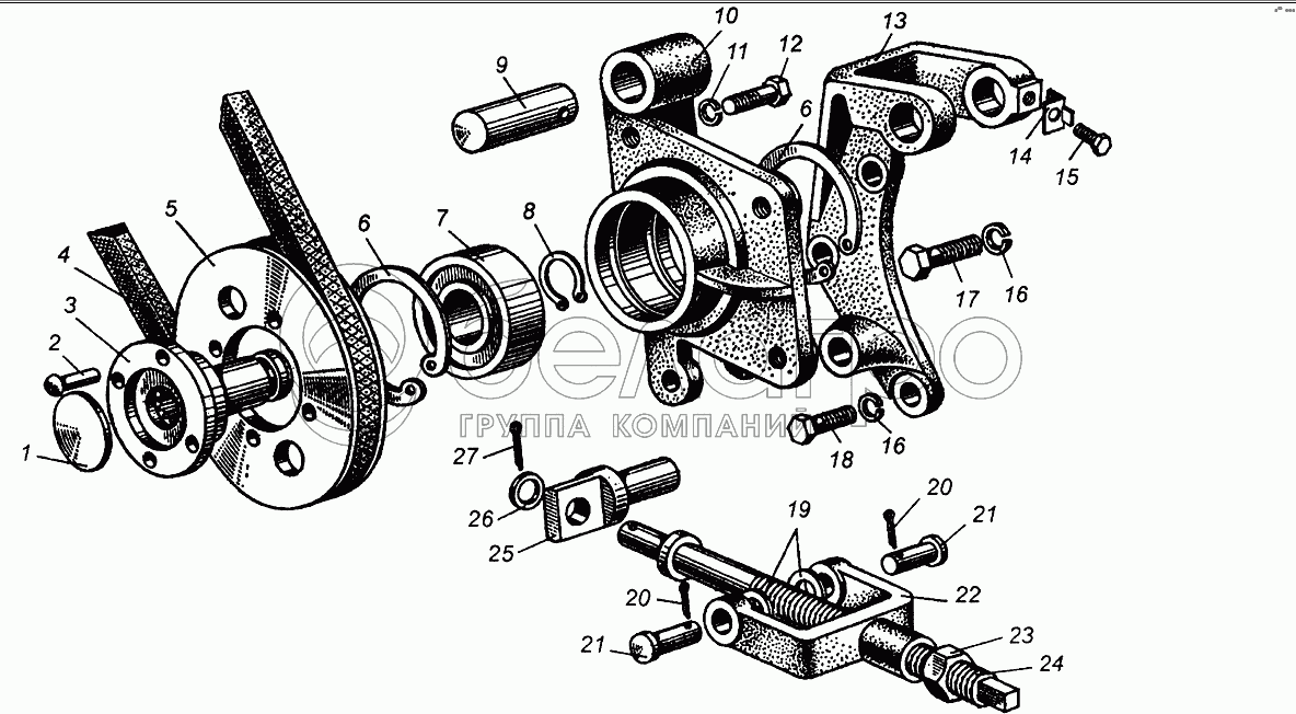 Каталог запасных частей к технике: МАЗ-5429. Устройство натяжное насоса