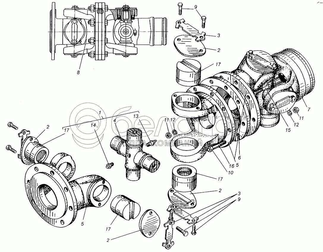 Каталог запасных частей к технике: МАЗ-5429. Вал карданный промежуточный МАЗ-509А