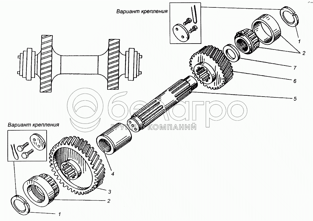 Каталог запасных частей к технике: МАЗ-5429. Вал промежуточный раздаточной коробки МАЗ-509А