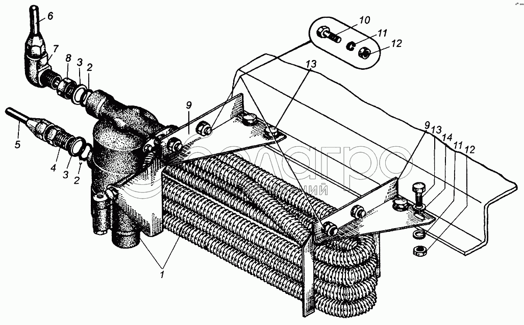 Каталог запасных частей к технике: МАЗ-5429. Влагоотделитель и его крепление
