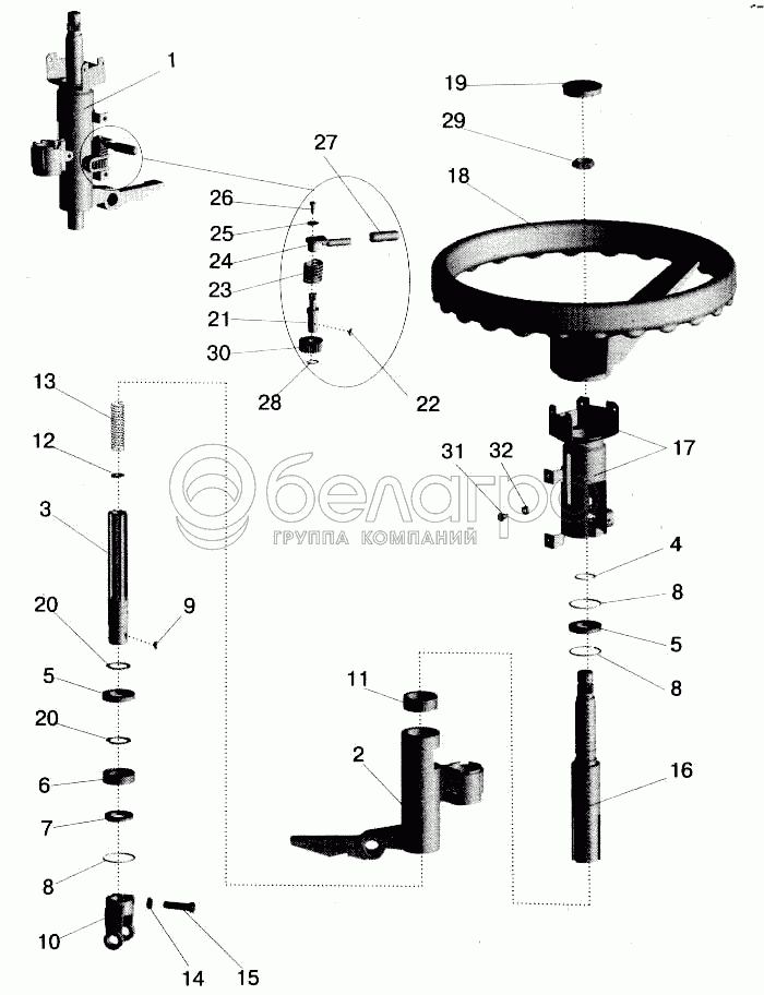 Каталог запасных частей к технике: МАЗ-543202. Колонка рулевая с колесом рулевого управления