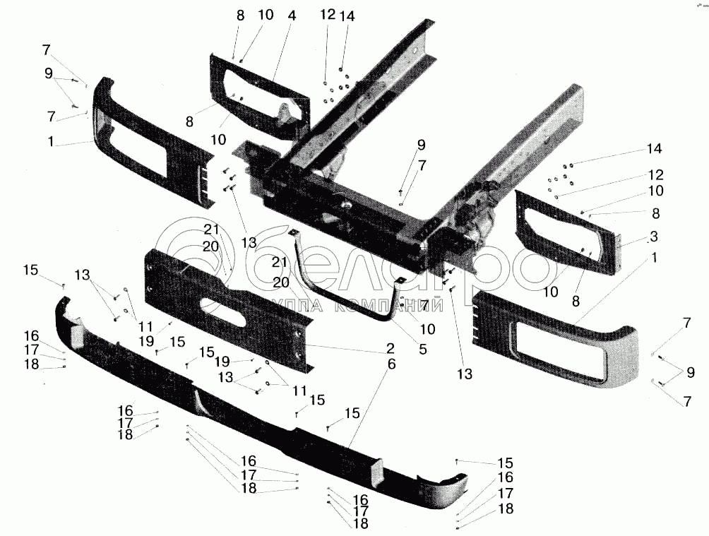 Каталог запасных частей к технике: МАЗ-543202. Крепление бампера