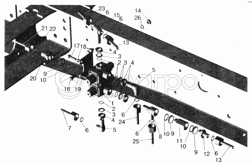 Каталог запасных частей к технике: МАЗ-543202. Крепление четырехконтурного клапана МАЗ-555102