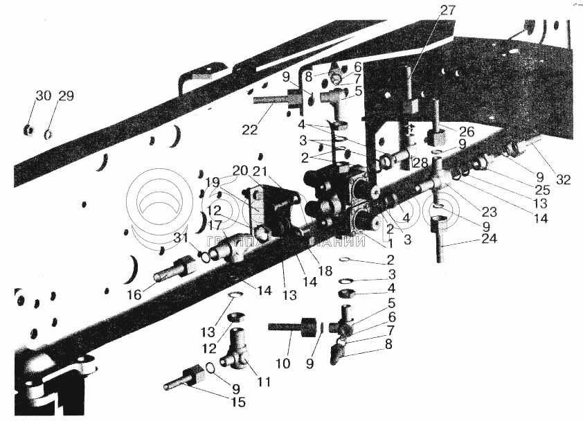 Каталог запасных частей к технике: МАЗ-543202. Крепление четырехконтурного клапана МАЗ-642208, 642205