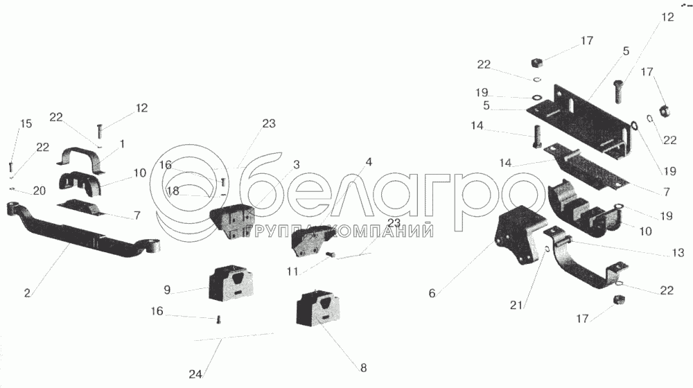 Каталог запасных частей к технике: МАЗ-543202. Крепление двигателя на автомобиле МАЗ-551603