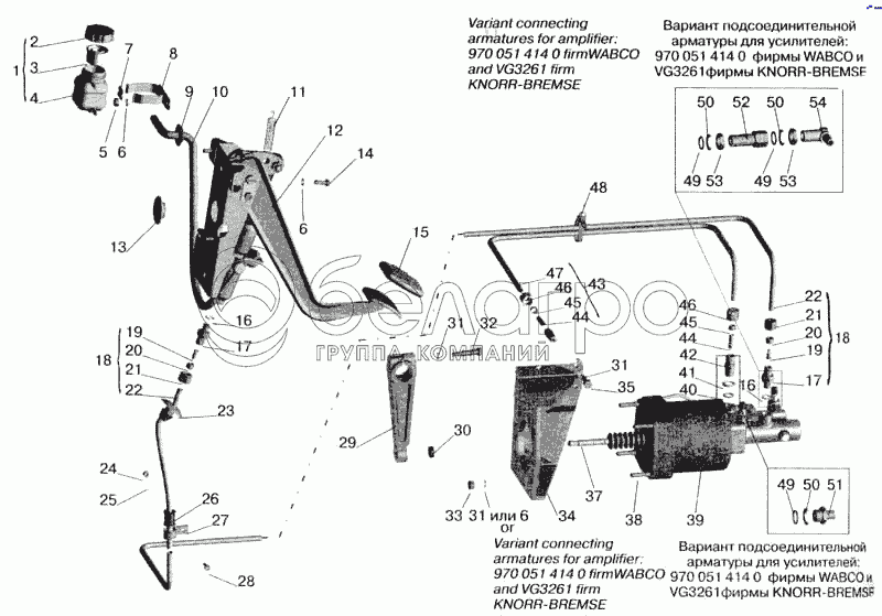 Каталог запасных частей к технике: МАЗ-543202. Механизм управления сцеплением