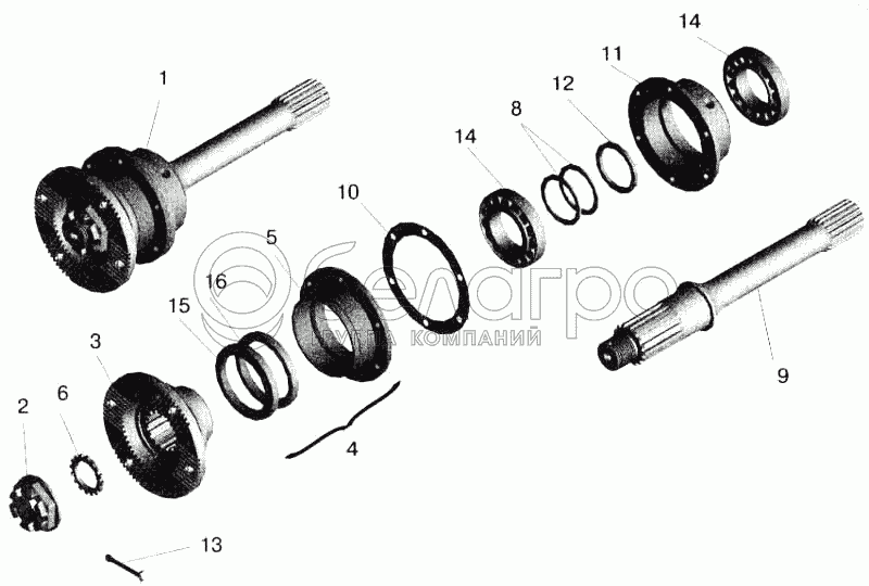 Каталог запасных частей к технике: МАЗ-543202. Мост средний. Вал задний