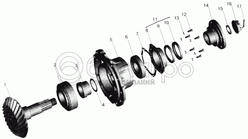 Каталог запасных частей к технике: МАЗ-543202. Мост задний МАЗ-543208. Шестерня ведущая