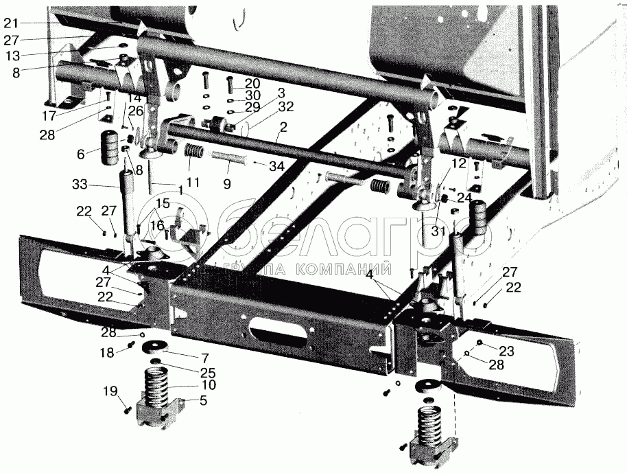 Каталог запасных частей к технике: МАЗ-543202. Переднее подрессоривание большой кабины