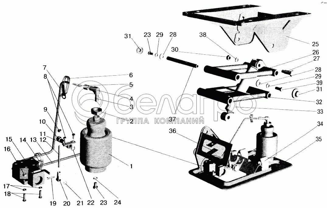Каталог запасных частей к технике: МАЗ-543202. Подставка сиденья с пневмооборудованием