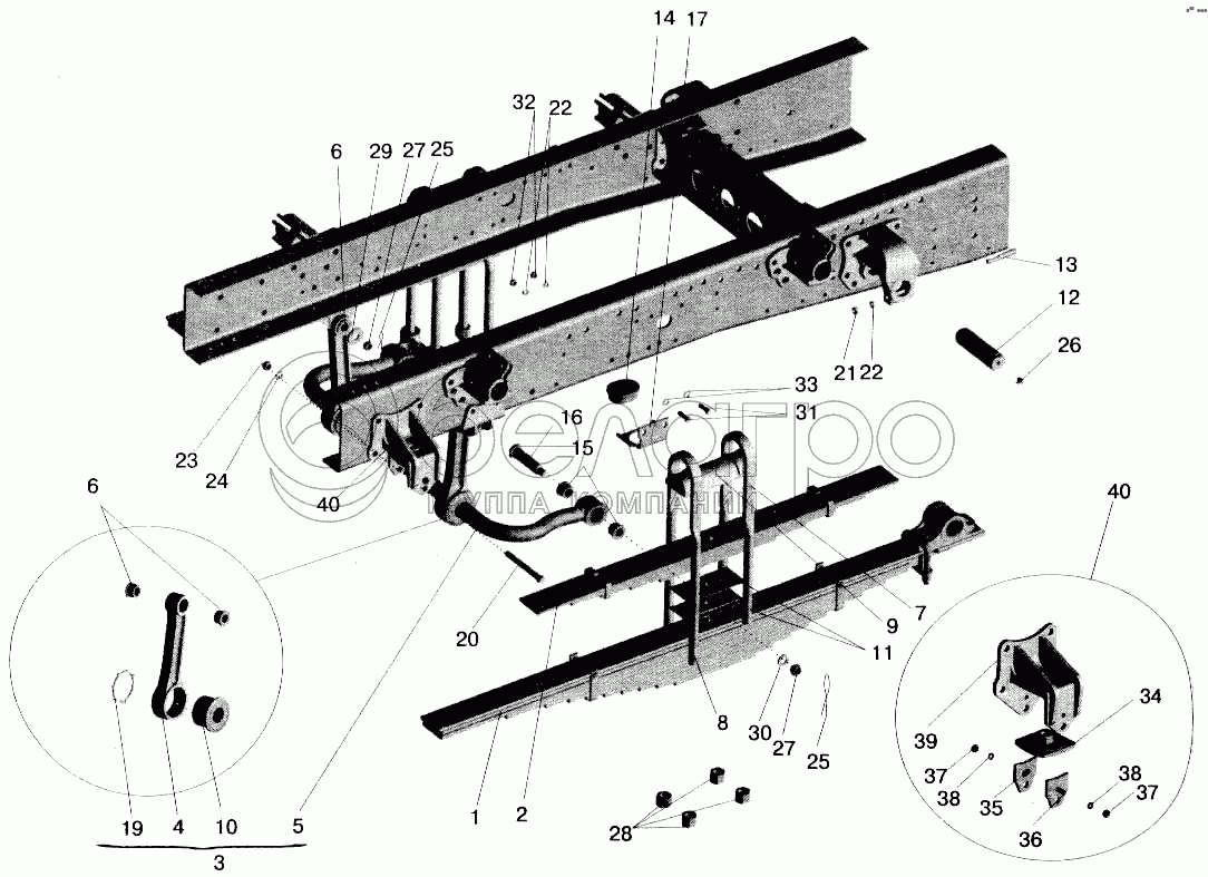 Каталог запасных частей к технике: МАЗ-543202. Подвеска задняя 54321-2900002-10