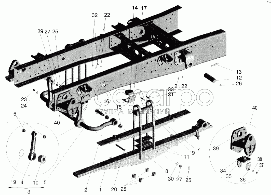 Каталог запасных частей к технике: МАЗ-543202. Подвеска задняя 5551-2900002-10
