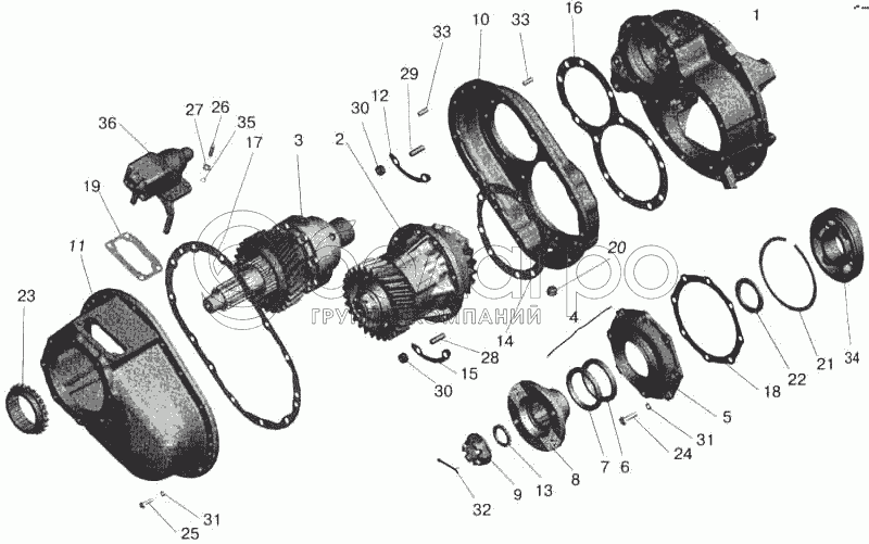 Каталог запасных частей к технике: МАЗ-543202. Редуктор среднего моста