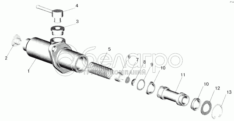 Каталог запасных частей к технике: МАЗ-543202. Цилиндр подпедальный