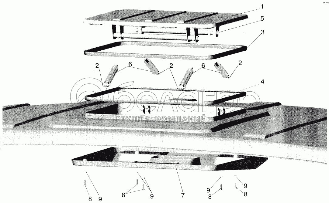 Каталог запасных частей к технике: МАЗ-543202. Установка крышки вентиляционного люка