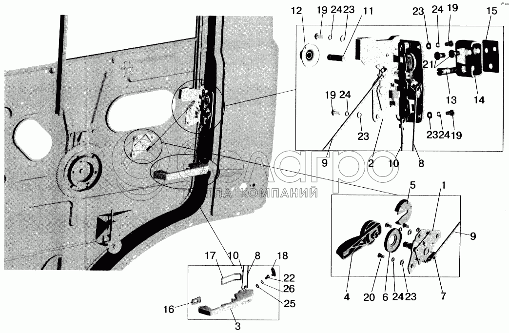 Каталог запасных частей к технике: МАЗ-543202. Установка наружной ручки и замка двери