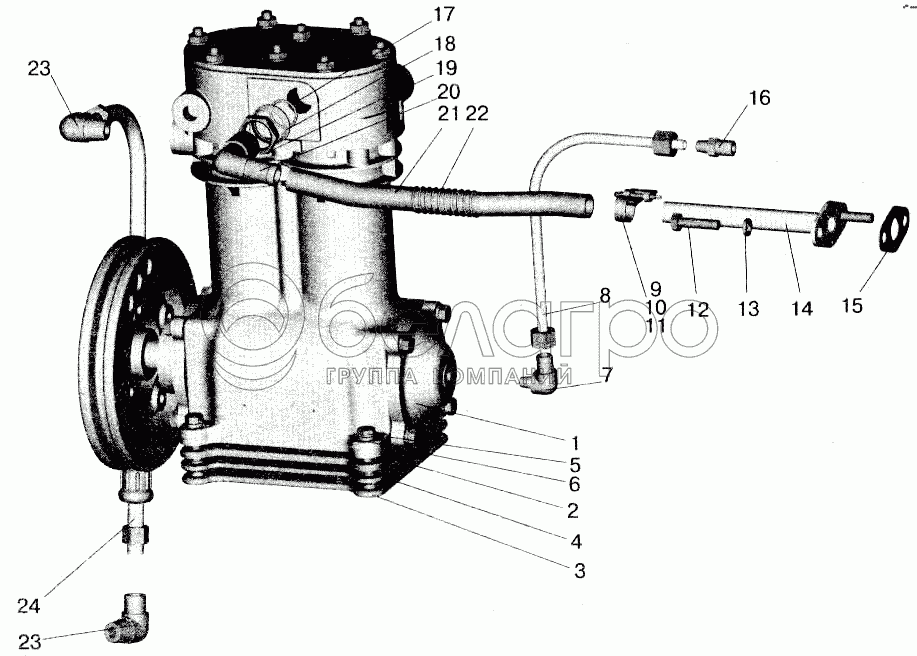 Каталог запасных частей к технике: МАЗ-543202. Установка пневмокомпрессора