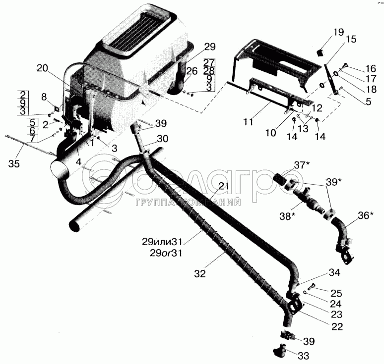 Каталог запасных частей к технике: МАЗ-543202. Установка шлангов и крана управления отопителем