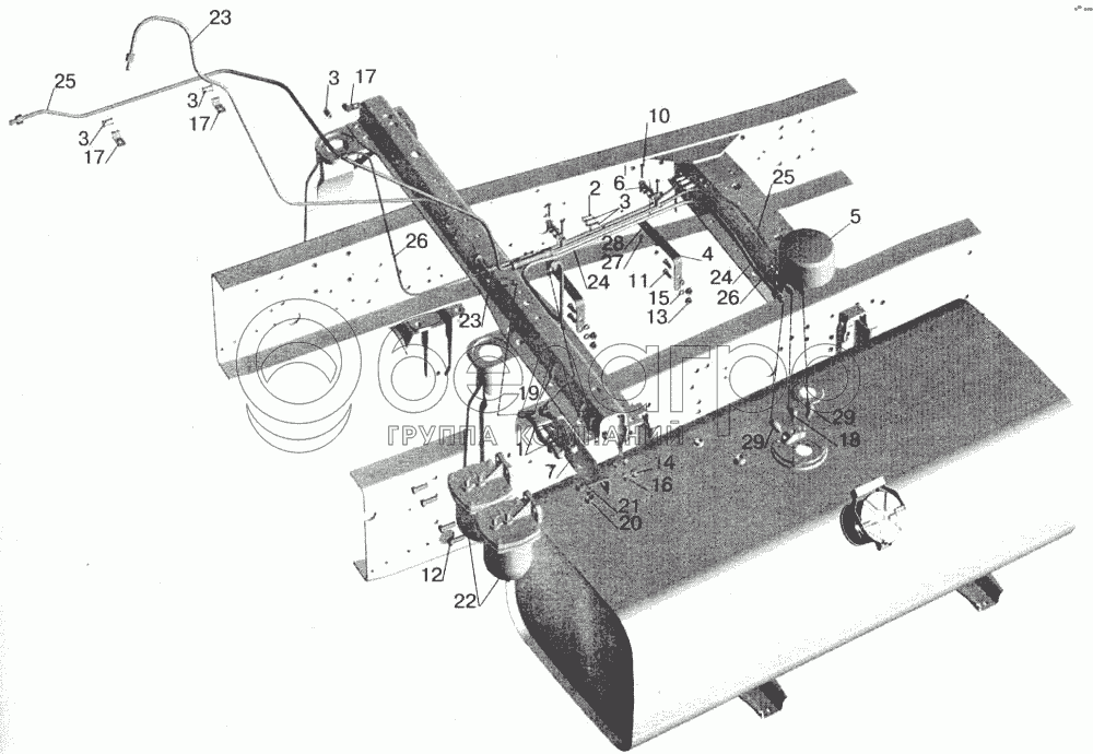 Каталог запасных частей к технике: МАЗ-543202. Установка топливопроводов МАЗ-543208 (без подогревателя)