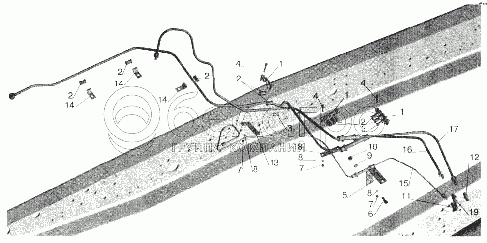 Каталог запасных частей к технике: МАЗ-543202. Установка топливопроводов МАЗ-555102(без подогревателя)