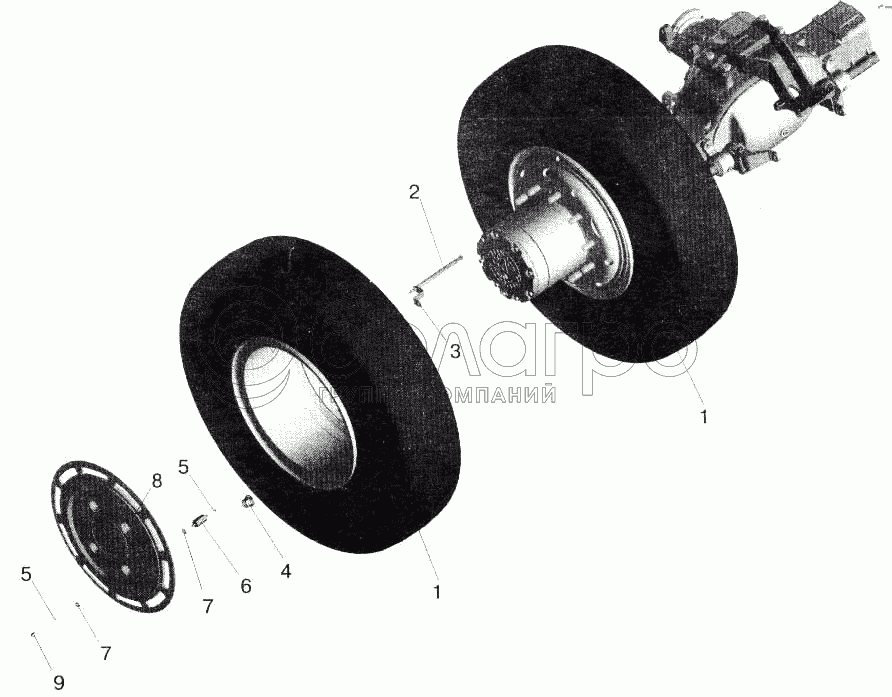 Каталог запасных частей к технике: МАЗ-543202. Установка задних колес