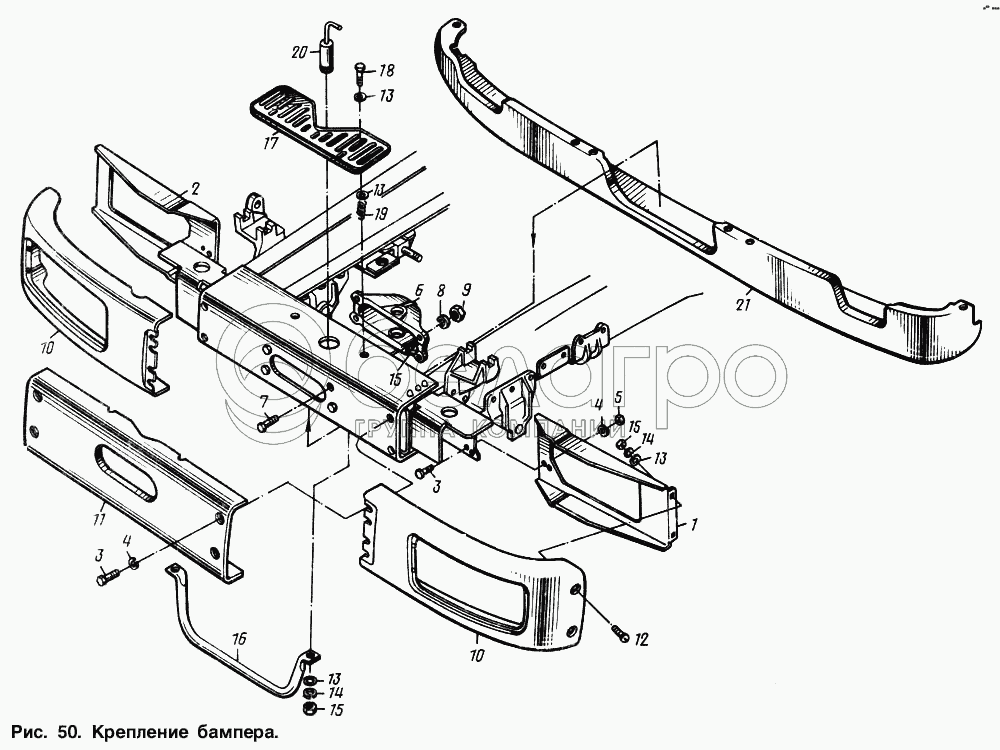 Каталог запасных частей к технике: МАЗ-54321. Крепление бампера