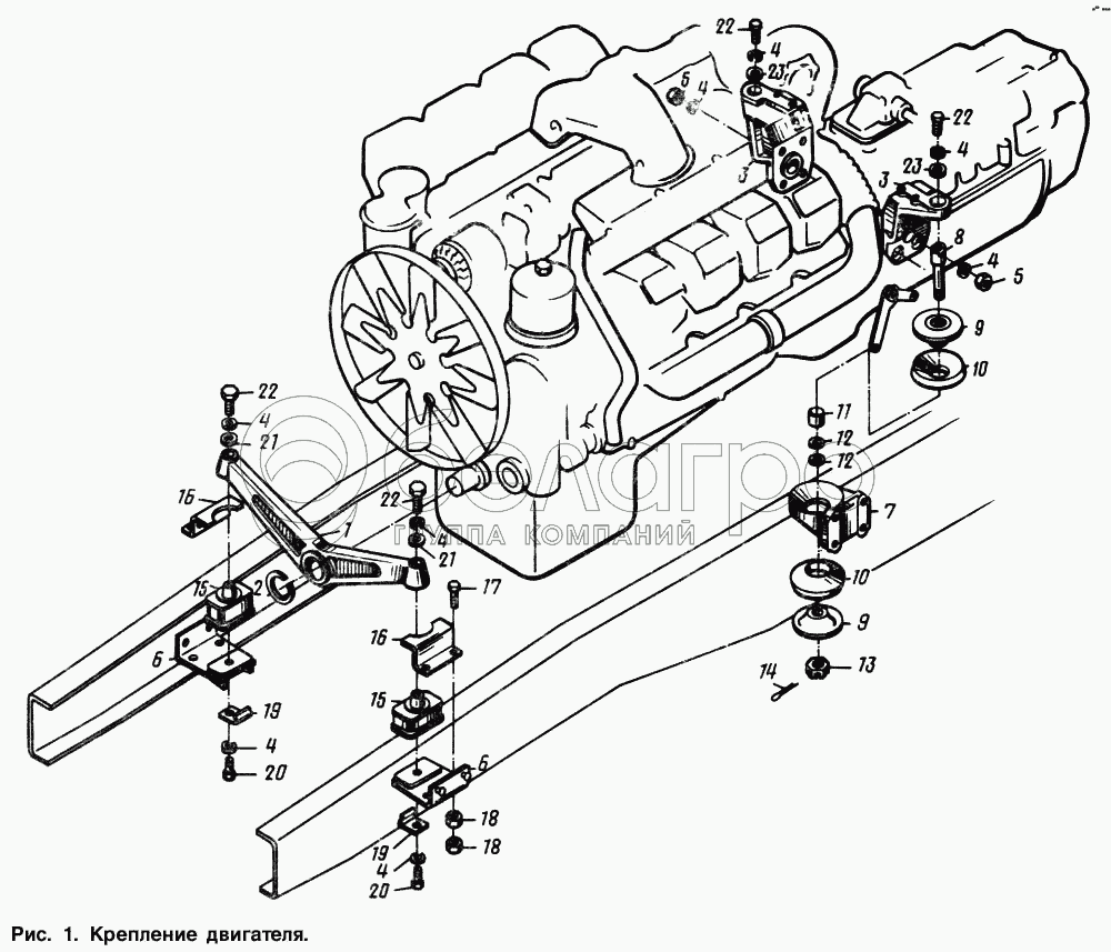 Каталог запасных частей к технике: МАЗ-54321. Крепление двигателя