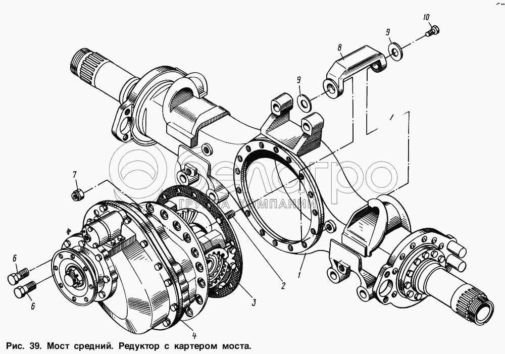 Каталог запасных частей к технике: МАЗ-54321. Мост средний. Редуктор с картером моста